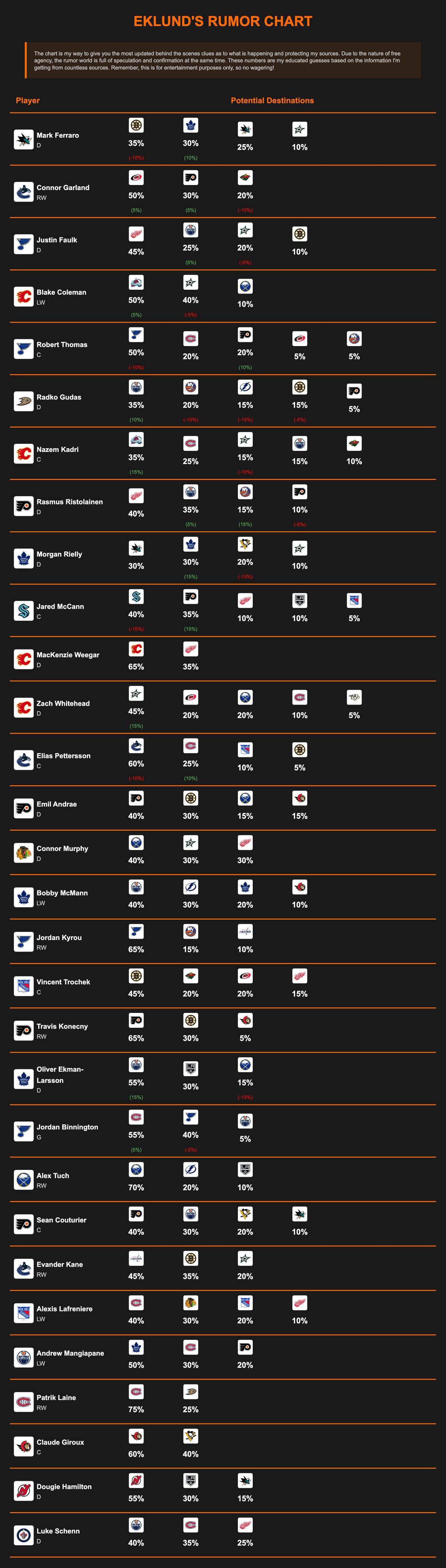 EKLUND'S FREE NHL TRADE RUMOR CHART