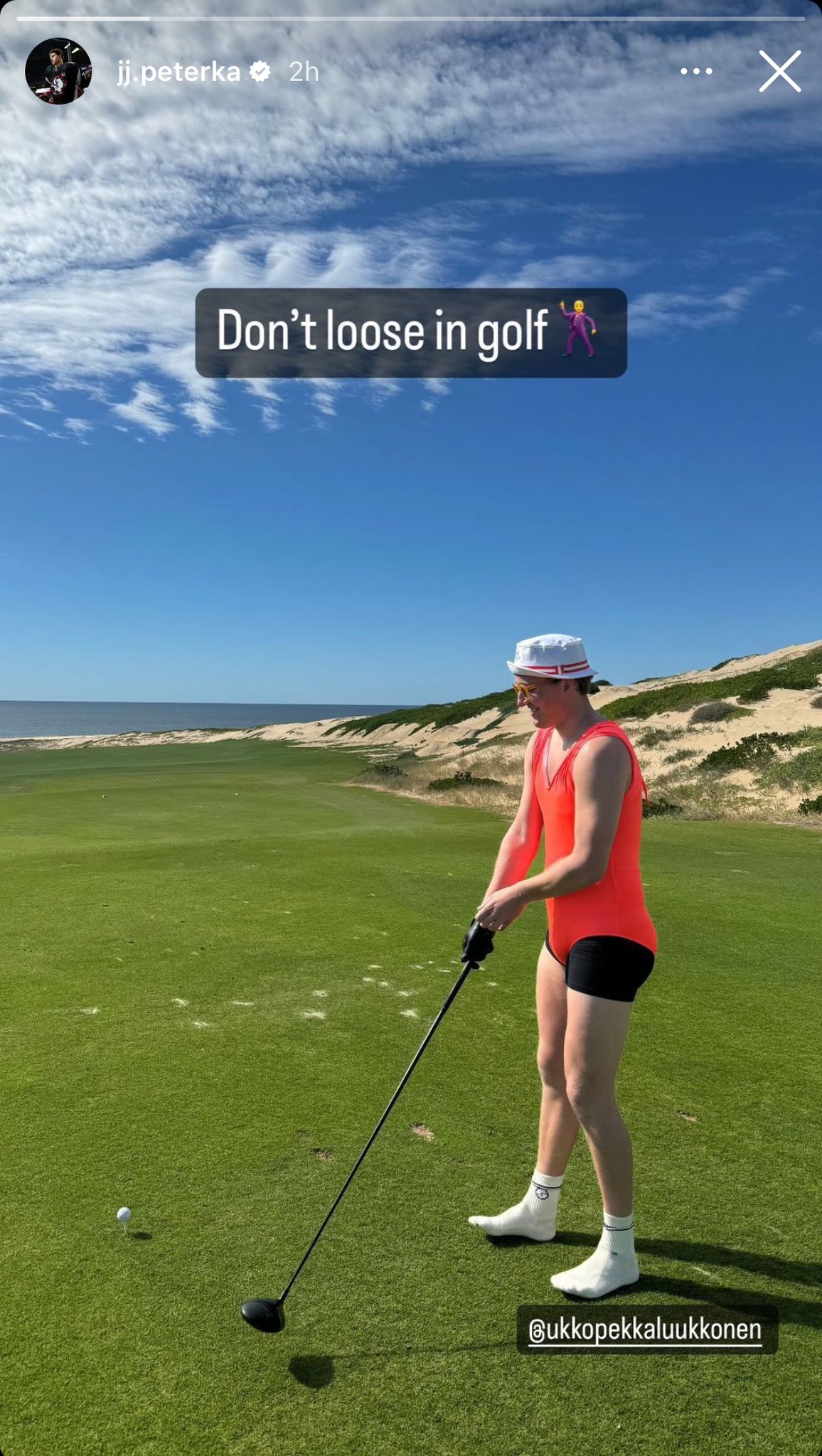 Ukko-Pekka Luukkonen learned the hard way not to ‘loose’ a round of golf to JJ Peterka 😂