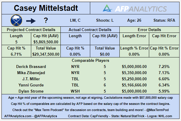 “In our eyes, Casey Mittelstadt from the Buffalo Sabres is a legit TOP6 center. If the Sabres are really shopping Mittelstadt, there are definitely some teams who should try to acquire him.”