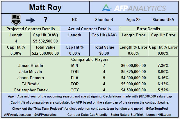 So again, for the purposes of this exercise, we are going to pencil in a Sabres signing of #GoKingsGo RD Matt Roy at our projection👇#NHL #LetsGoBuffalo 6/12