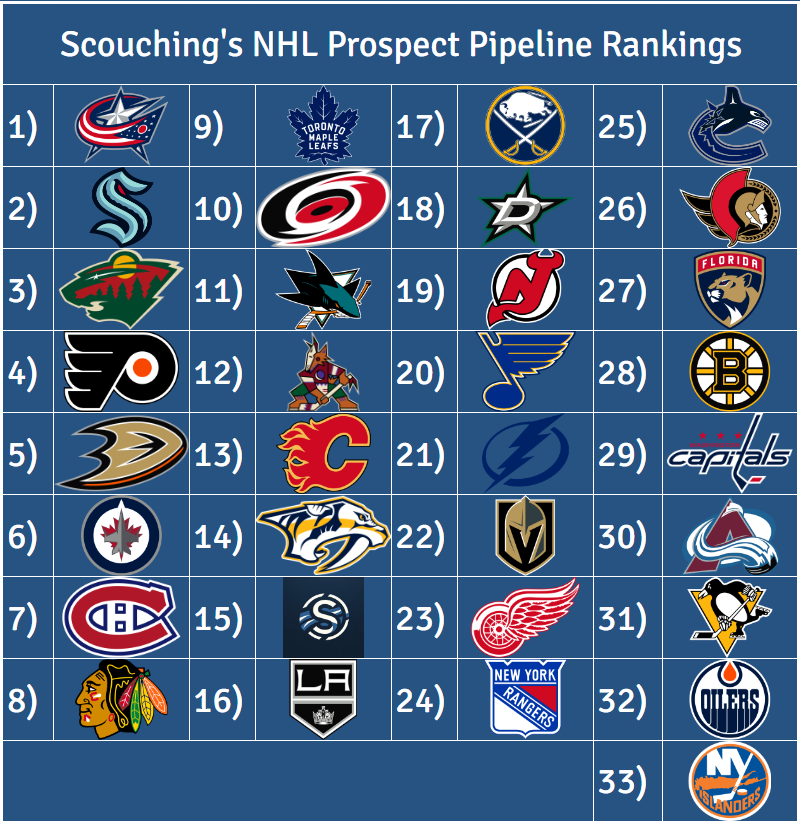 Here's an update look at NHL Prospect Pipelines, available in real time through https://t.co/hbS4lMhyAJ.