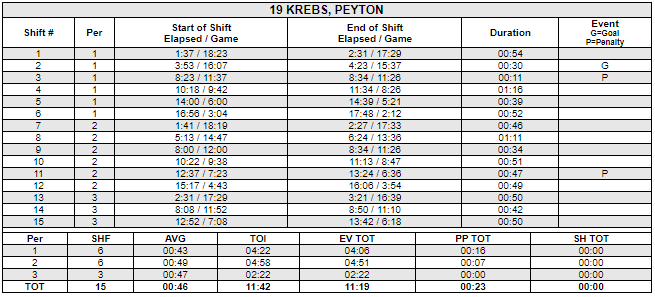 The head coach decided to play JORDAN GREENWAY three minutes more than Krebs at center AND Greenway missed time catching a high stick.