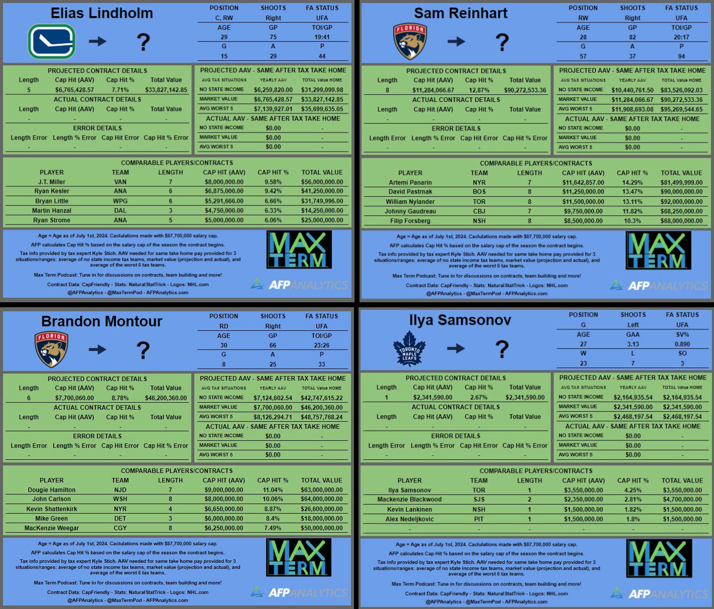With our final 2024-2025 #NHL contract projections released, here is a look at our top UFA projection at each position (based on AAV):