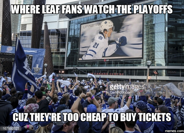 I can't help thinking about all those leaf fans who think that because a few thousand leafs fans stand outside of the ACC to watch games for free, on the big screens, because they're to cheap to step up and buy a ticket to a game, somehow proves the leafs are in a better situation than the Senators.