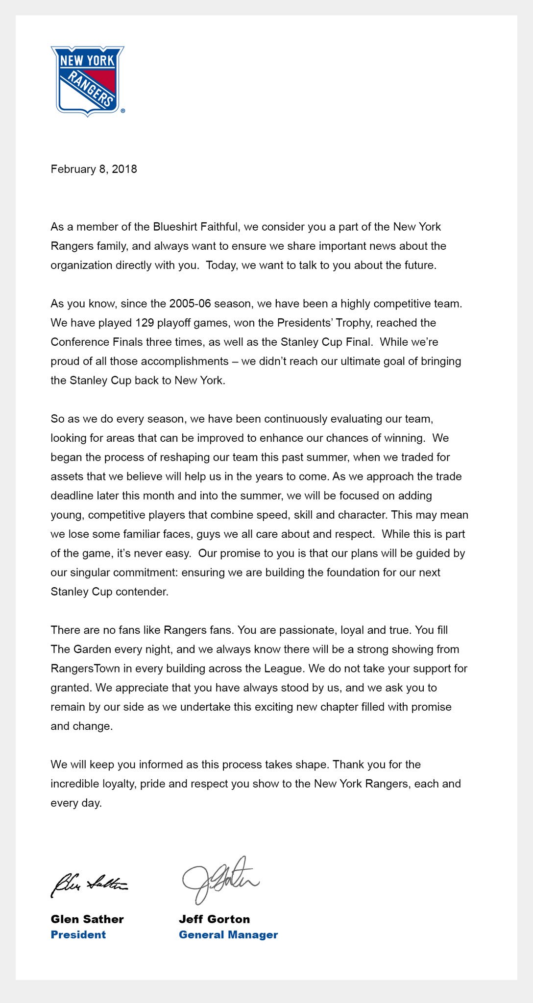 They've been drafting fairly well considering where they've been picking but it's been clear for a couple years now that they don't have the top end talent to really be a legit cup contender. Beats me how Rangers fans could be mad that it sounds like they're gonna rebuild lol.